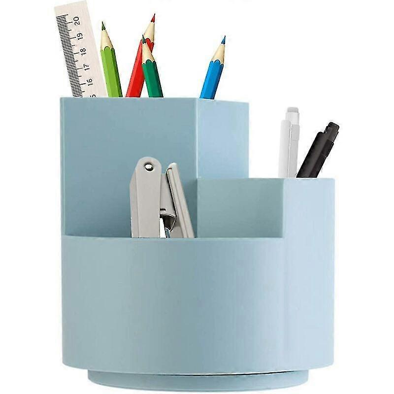 Multi-function Rotating Pen Holder With 3 Compartments, Creative Desk Organizers Pen Holder (blue)