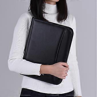 Multifunctional Professional Business Zippered Portfolio Padfolio Folder Document Case Organizer A4 PU Leather with Calculator Business Card Holder
