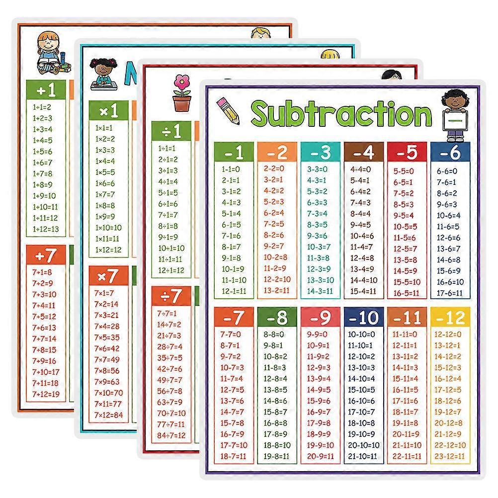 Multiplication Chart Poster for Kids Classroom Educational Learning 4Pcs Pack