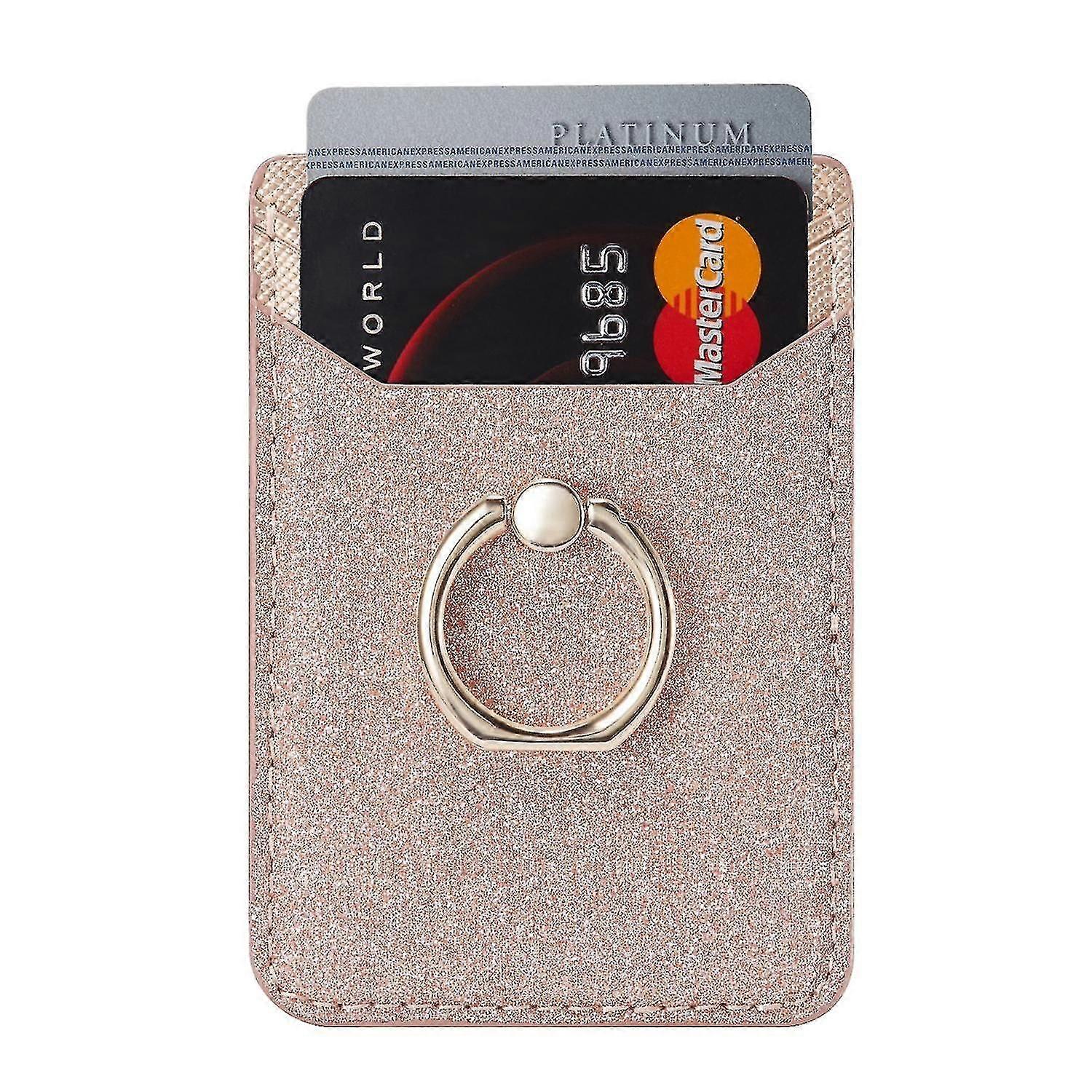 MUXMA MX112 Ring Stand Phone Card Holder Sand Texture PU Leather RFID Blocking Adhesive Card Pocket-hy
