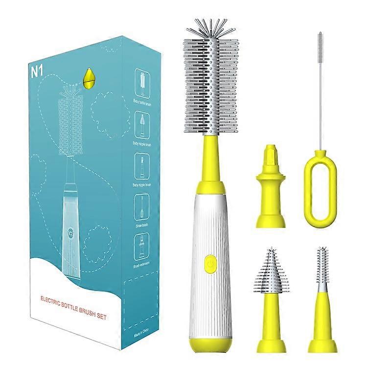 N1 360 Degree Rotatable Electric Baby Bottle Brush Set Portable Pacifier Cleaner without Storage Rack (BPA Free, No FDA)