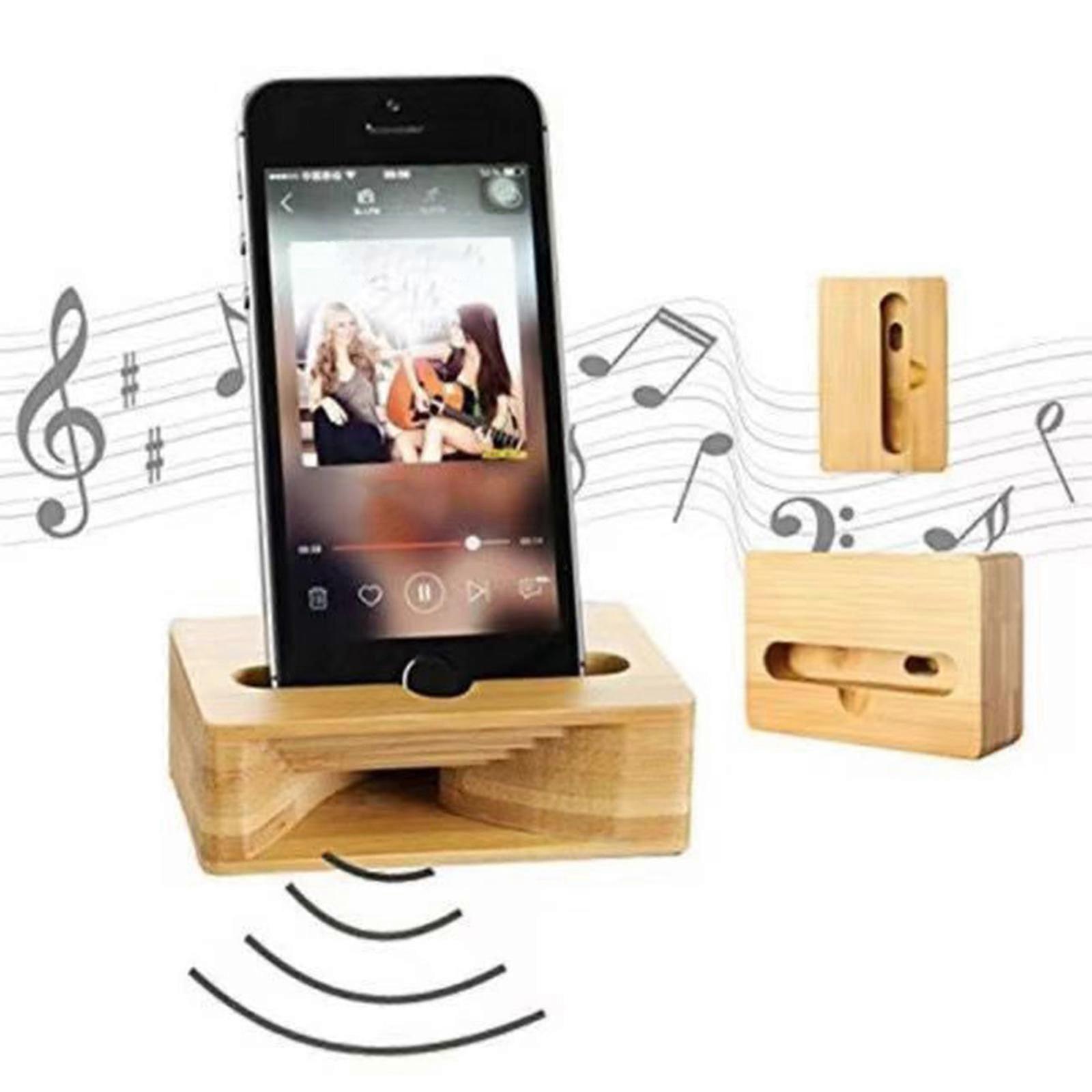 Natural Bamboo Phone Stand with Built-in Sound Amplifier - Stylish and Functional