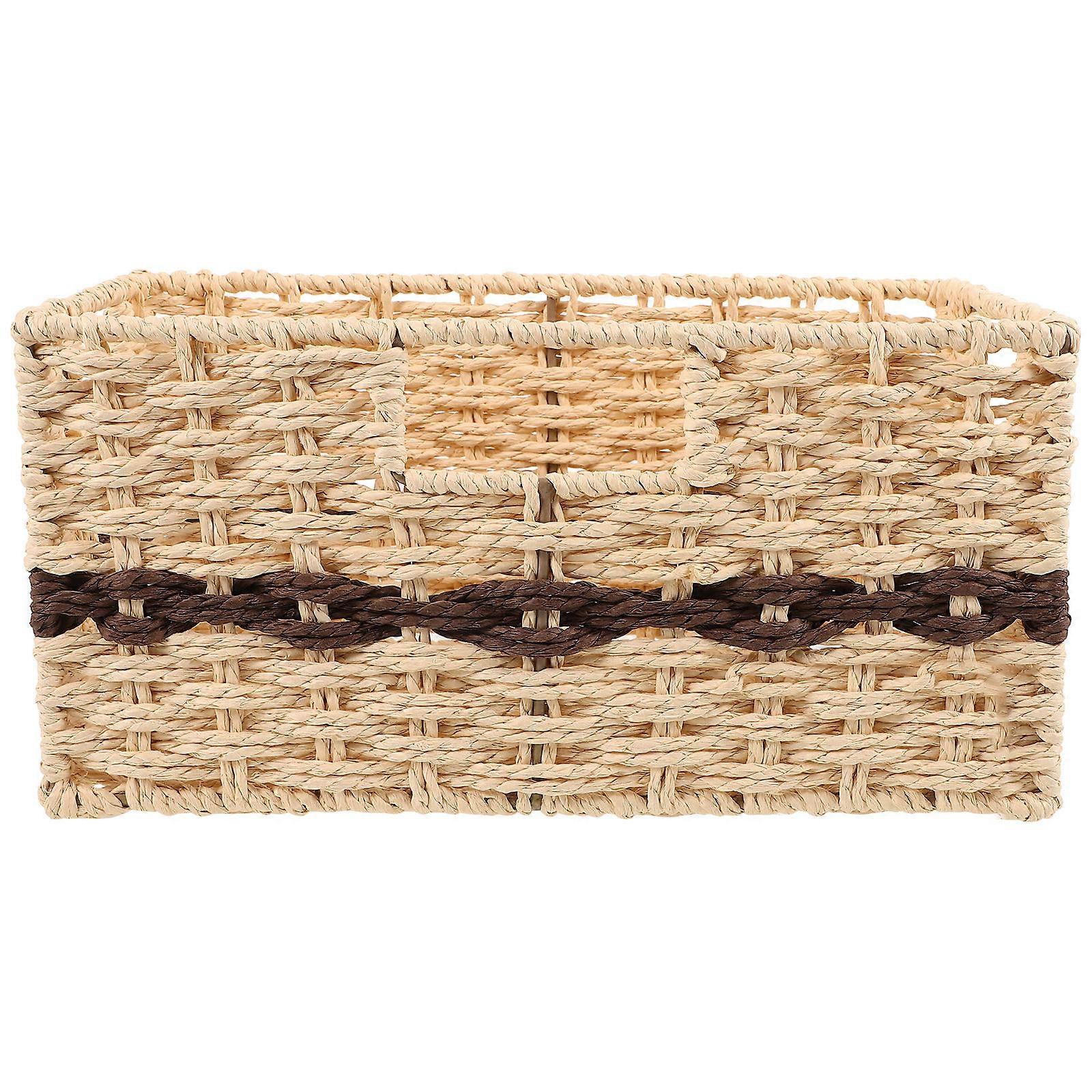 Natural Look Multi-functional Woven Storage Box For Desktop Tidying Rectangular Shape Large-capacity Storage 1Pack