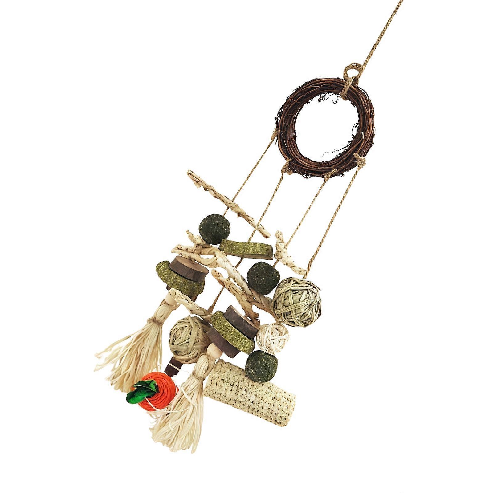 Natural Wood Chew Toy For Rabbit Hamsters And Parrots Interaction Mental Health Pet Accessories With Hanging Design Multicolor