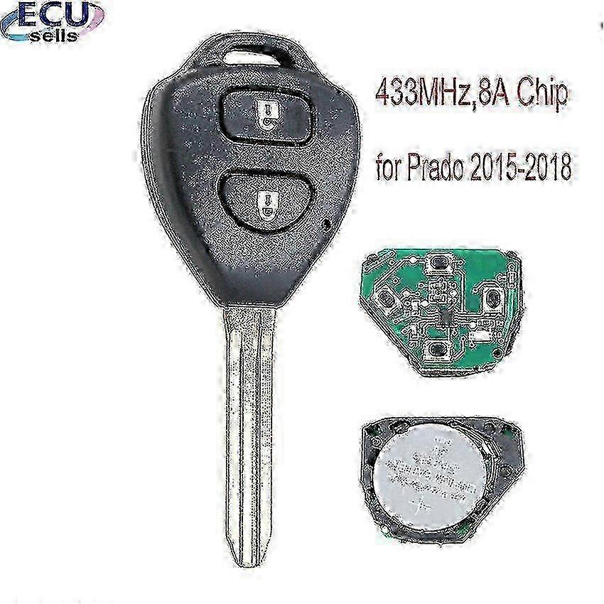 New Key Head Remote for Toyota Prado 2015-2018 with 2 Buttons and 433MHz Frequency, 8A