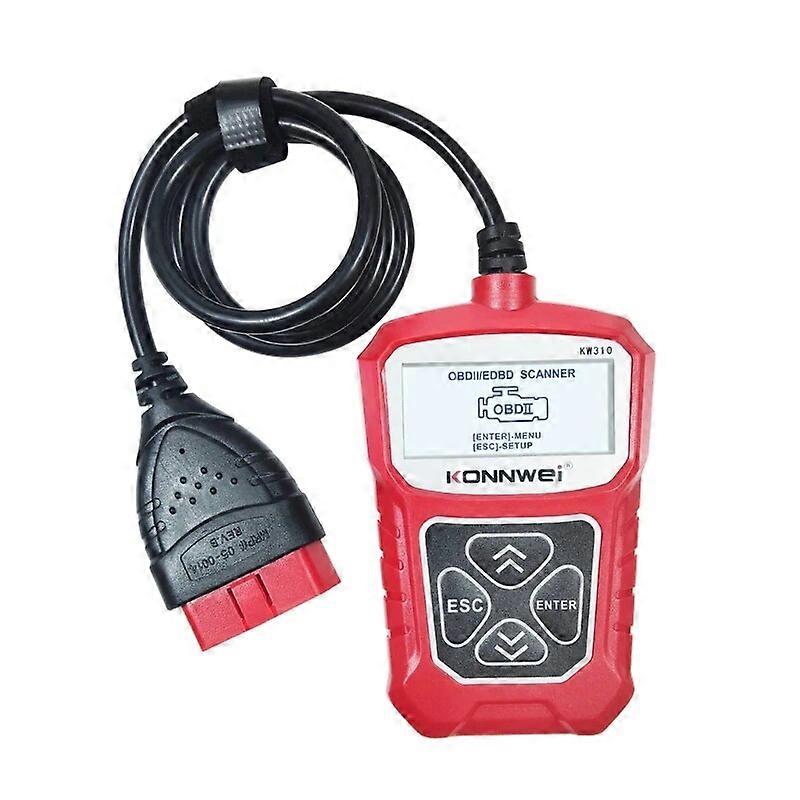 New Automotive Classic Enhanced Universal OBD II OBD2 KW310 Scanner Car Engine Check Fault Code Reader Diagnostic Scan Tool brand new and high quality Features: 1. Works on ALL OBD II Enabled vehicles, both Gasoline and Diesels for cars - domestic and imported. 2. Features the unique patented One-Click Readiness for Key for quick State Emissions readiness check and drive cycle verification. 3. built-in speaker provide both visual and audible tone for readiness verification 4. Retrieves generics (P0, P2, P3 and U0), manufacturer specific (P1, P3 and U1) codes and pending codes 5. Easily determines the cause of the Check Engine Light(MIL) 6. Turns off Check Engine Light (MIL), clears codes and resets monitors 7. Views freeze frame dataThe KONNWEI KW309 OBD2 / EOBD / CAN Car Diagnostic Scanner supports all 10 OBDII test modes on all OBDII compliant vehicles for a complete diagnosis. the KONNWEI KW309 is truly the ultimate in power and affordability, allowing users to do their jobs faster. 8. Displays monitor and I/for M readiness status (emissions) 9. Reads live PCM datastream 10. Displays live O2 sensor test data 11. EVAP System test data 12. Live sensor data in text mode and graph mode (1996 and newer vehicles) 13. Reads, stores and playbacks live sensor data 14. Troubleshooter code tips guide technicians to the root cause of a trouble code faster, saving diagnosis and repair for time 15. Battery Voltage real for time monitoring,better than other expensive item from others brand. 16. Built-in DTC look-up library and display definition. 17. Retrieves vehicle information (VIN, CIN and CVN) Support 7 languages: English, French, German, Dutch, Spanish, Russian, Portuguese Product (for cm) : 11.6 * 2.4 * 8cm MaterialPlastic Operating Temperature: 0 to 60C (32 to 140 F) Storage Temperature: -20 to 70C (-4 to 158 F) Color:black/red Quantity:1pc Note: Please allow 0-1cm error due to manual measurement. pls make sure you do not mind before you bid. Due to the difference between different monitors, the picture may not reflect the actual color of the item. Thank you! Package Includes: 1Car Tester 1User Manual