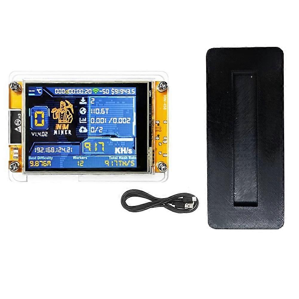 Specially optimized algorithm firmware enhances the hashrate to 917KH/s(Floating up and down), increasing the probability of winning the lottery by 1800% (Nerdminer V2 only 55KH/s). Optimized Software that achieves a higher Harshrate of 917KH/s. Hashrate increases by 1800% more than other boards from rivals, which means 1800% more chances of winning. Standalone: can work as a BTC lottery miner directly over WiFi. No External computer is needed. Embedded: low cost, low maintenance, high availability, high reliability, low power. Versatile: Solo/pool mining. Specifications: Due to different batches, there may be differences in product appearance and printed text, which will not affect us Color:As Shown Material:Acrylic Package Contents: 1 * NerdMiner with Case 1 * Data Cable (Color is random, cannot be specified) 1 * Stand Base