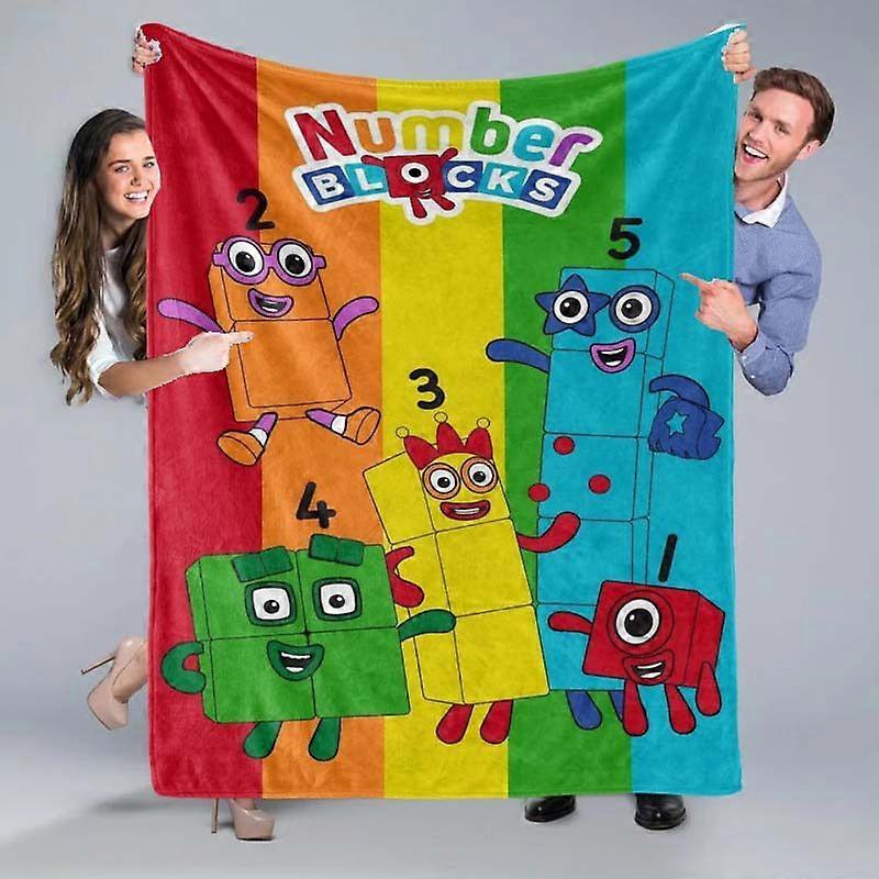 Number Blocks Fleece Blanket - Soft Warm All-Season Plush Bedspread with Number 1-10 Blocks Design, Machine Washable, Mu-POTEA103
