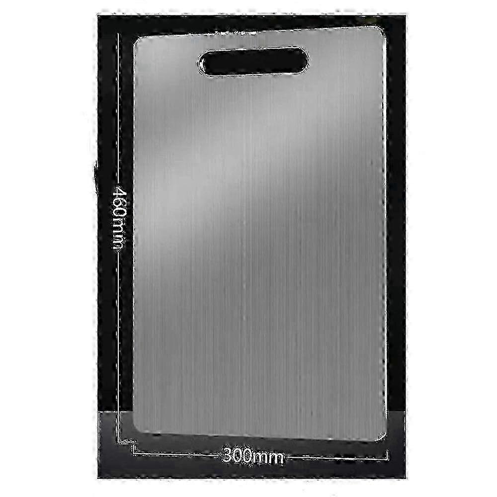 Titanium Cutting Board Double-Sided Titanium Kitchen Chopping Board Titanium Cutting Boards: Our titanium cutting boards redefine cutting boards by eliminating common flaws. Unlike traditional cutting boards that chemicals, are prone to cuts and grooves, leave plastic shavings, dull knives quickly, or absorb odors, our titanium cutting boards combine the best of all cutting boards without the drawbacks.YOUR HEALTH: Our cutting boards are made from grade titanium, a material trusted in most implants. Unlike wood or boards, our cutting boards don't leave any cuts, grooves, or perforations when a kitchen knife cuts, and these boards don't absorb liquids, making them the safest choice for your kitchen.Won't contaminate your food with (completely ): Studies have found that if you cut your food on a plastic cutting board, you an average of 50 grams of microplastic shavings per year! Titanium cutting boards have a surface that won't release any chemicals or leave .Keep your knives sharp longer: Unlike cutting boards made of stone, glass or steel, which are particularly harmful to blades, titanium is three times softer than the steel used in 99 percent of kitchen knives. This means that titanium cutting boards won't damage or dull your knives like stone, steel or glass cutting boards because they're harder. With this cutting board, you can enjoy the durability and hygienic benefits of titanium without compromising .EASY TO CLEAN (STAIN RESISTANT, RESISTANT, ODOR RESISTANT): If you hate scrubbing hard to get stains and odors on wood and plastic boards, you'll love the ease of cleaning with a titanium board. Food and liquids won't stick to it, just rinse it under tap water and it's ready to use again as it dries instantly. The non-porous surface means that odors and colors can be washed off immediately, keeping your food free from cross-contamination.Includes: 1x stainless steel chopping board