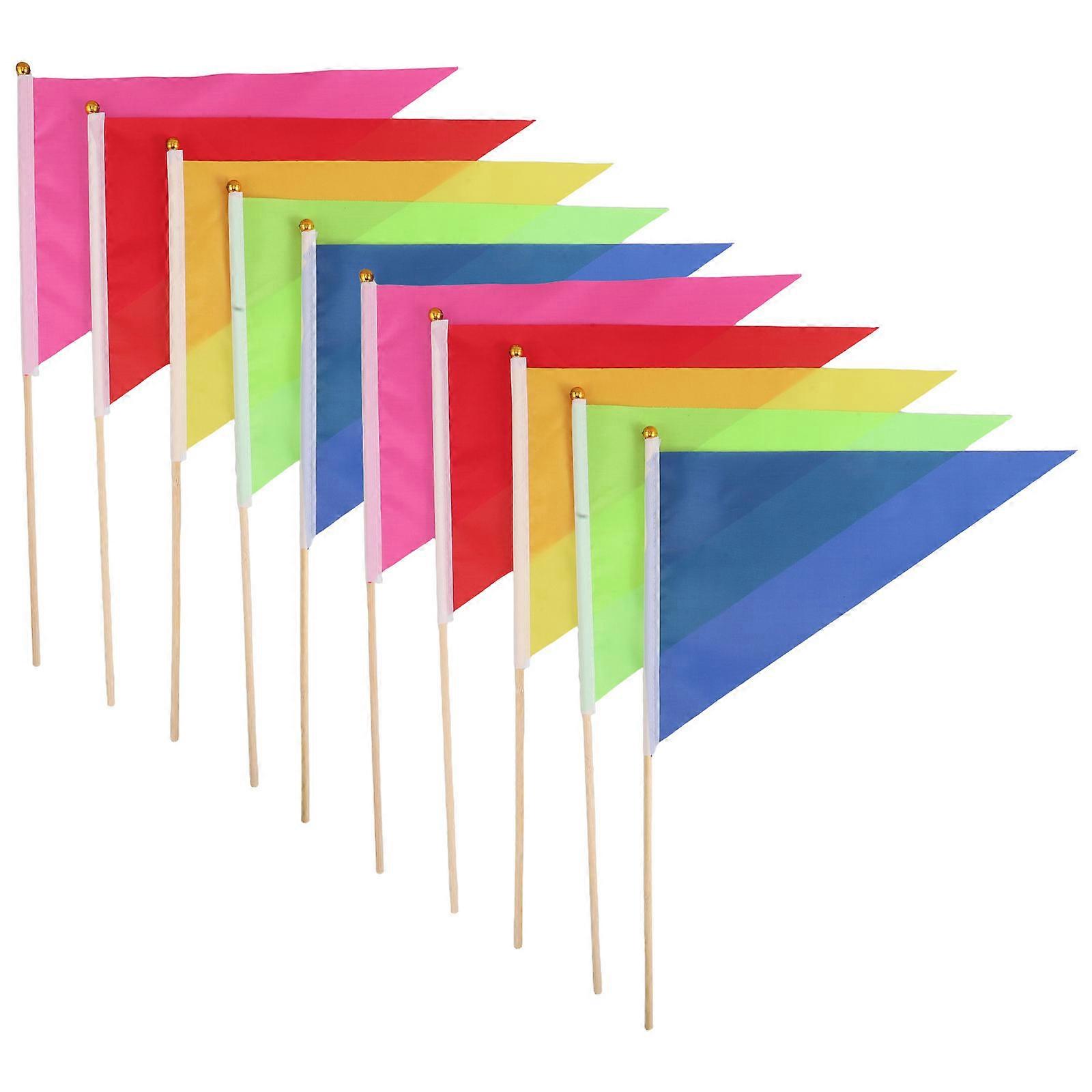 Outdoor Marking 10Pcs Triangle Flags with Bamboo Pole Handheld Flags