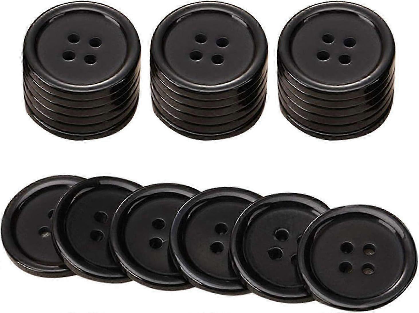 Packet of 20 x Black Resin 20mm Round Buttons 4 Hole