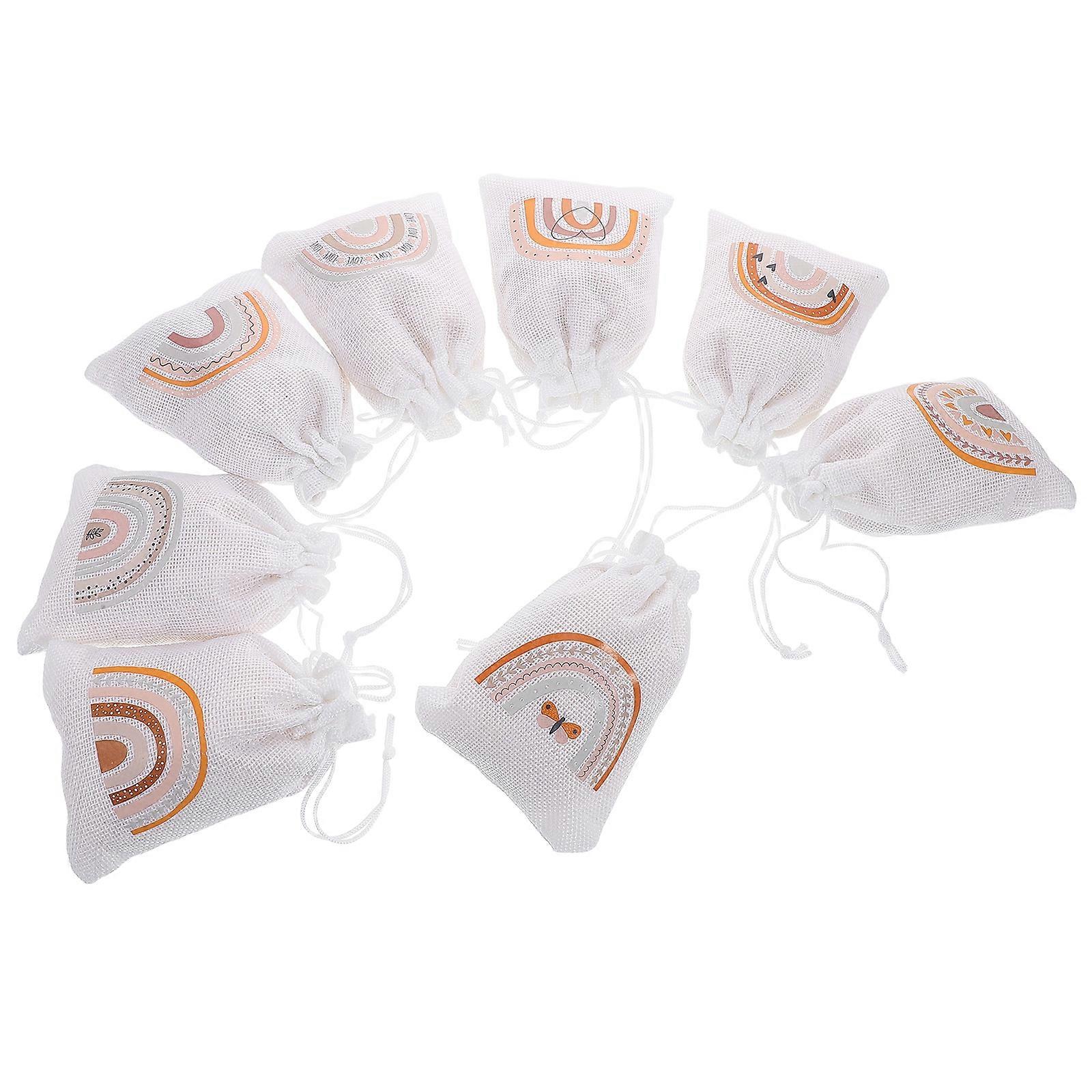 These drawstring bags are designed for versatility, featuring a secure closure that keeps contents safe while providing easy access. for storing jewelry, treats, or small treasures, their compact size and eye-catching design make them a practical and decorative solution for organizing or gifting. Features -Color:Assorted Color -Material:Burlap -Size:13.50X10.00X0.50cm/5.31X3.93X0.20in -Vibrant and stylish: the colorful rainbow theme adds a lively and fashionable element to your presentation, for any celebration -Burlap: crafted from burlap, these bags are built to last, offering a sustainable packaging option -Easy to use: the drawstring closure makes these bags easy to open and close, providing convenience for both packing and -Artistic bohemian design: style adds a touch of creativity and personality, making these bags a for artistic individuals -Multipurpose use: suitable for various occasions such as parties, weddings, and holidays, these bags can hold treats, jewelry Package list: 8 x bags