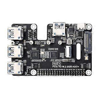 PCIe to USB 3.2 Gen1 and M.2 HAT for 5, Supports NVMe Protocol Solid State Drive, Expands 4-Ch USB