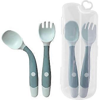 Pcs Baby Learning Spoon and Fork Flexible Heat Resistant Easy Grip Learning Spoon Kids Fork (Blue)
