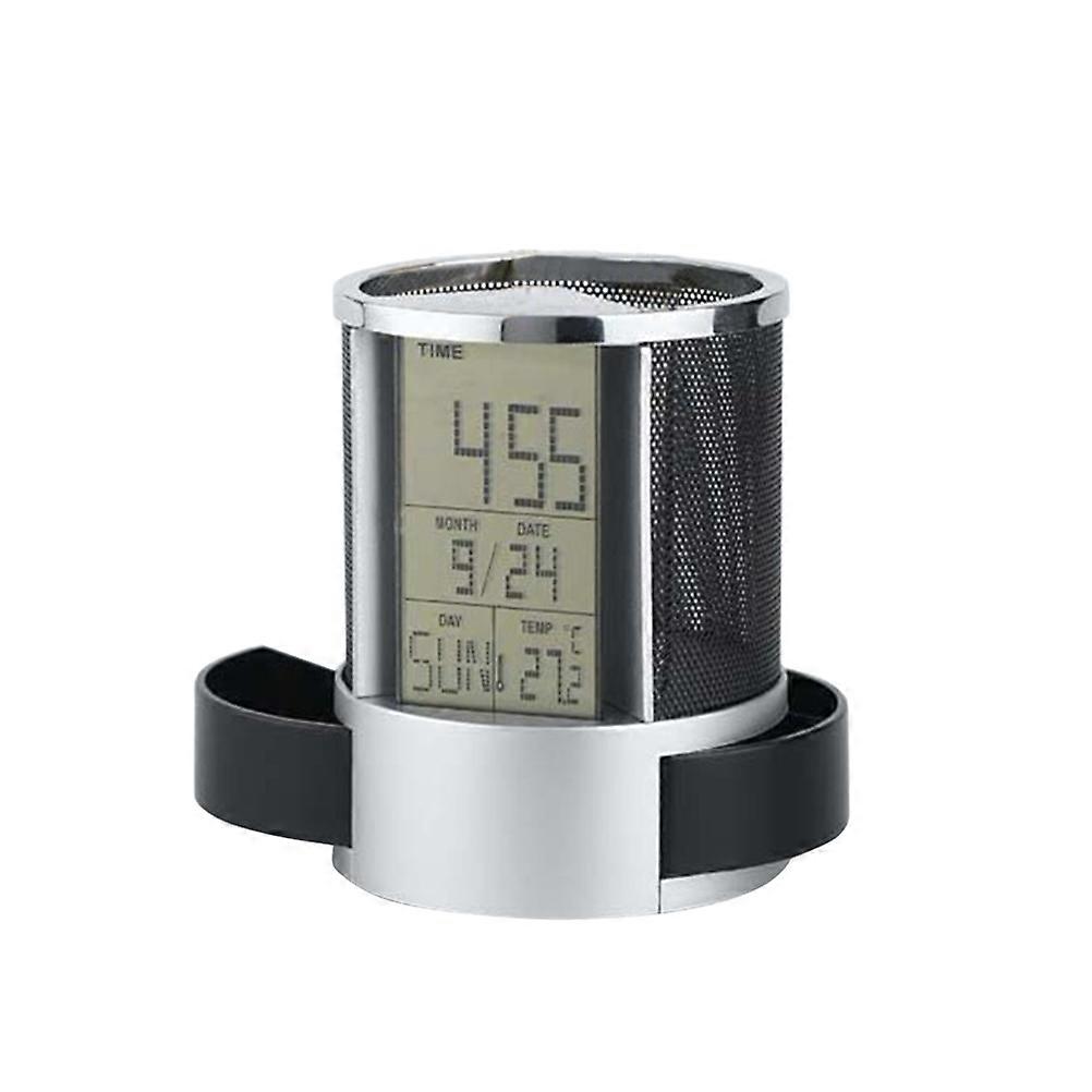 Pen Can for Desk Wire Mesh Desk Organizer Time Display Date Display 1Pcs