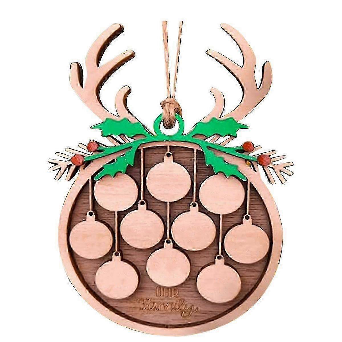 Personalized Christmas Ornaments for Tree Decoration Featuring 10 Custom Names and Includes a Rope (Antlers + Green)