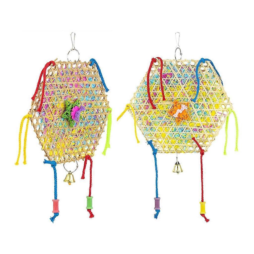 Features: Natural ratten + Paper, made from plant root, good chewing products. There are also much paper in different colors, which are very suitable for pets of all ages. One hook at the top of the toy, which can be quickly hung in the cage. Bright colors and crisp- ringing tones are easy to attract the attention of pet birds and encourage them to climb and bite to keep healthy-. The parrot foraging toy gets various textures, birds can not only tear and chew block beads and paper scraps, but also enjoy hanging, swinging and rotating physical activities by grasping the basket. Package Includes: 2x Bird Foraging Toys- Specifications: Material: Bamboo- Whole Height: Approx.35cm/13.78inch note: 1.Please allow 1-2cm errors due to manual measurement, make sure that you do not mind before you order. 2.Due to the differences between different monitors, the picture may not reflect the actual color of the item.