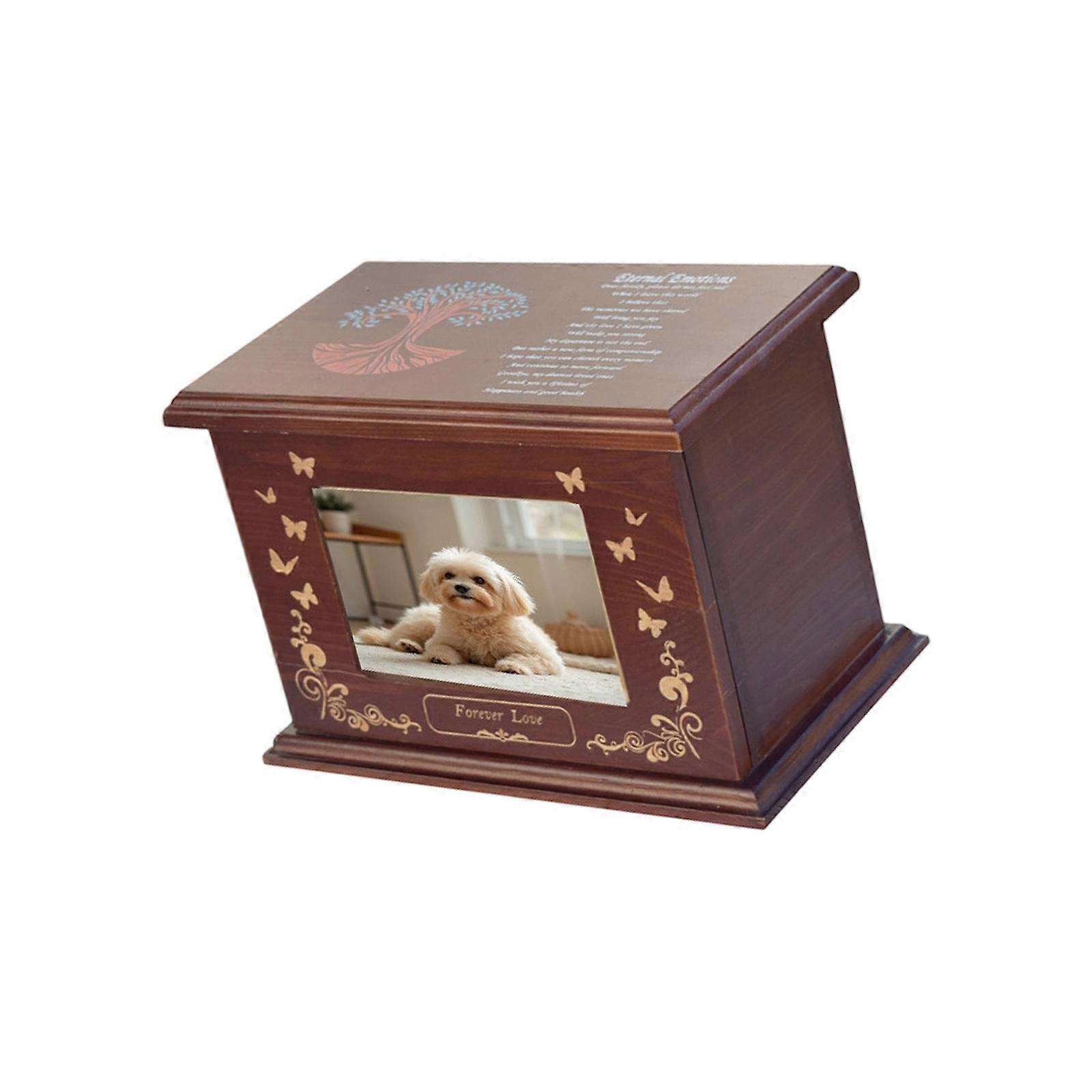 Pet Urn Memorial Box Holds Ashes Toy Engraved Pattern Design Cremation Container With Remembrance Words for Dog Cats Brown red