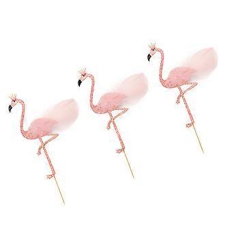 Pink Flamingo Cake Inserts for Decoration 3Pcs Party Set