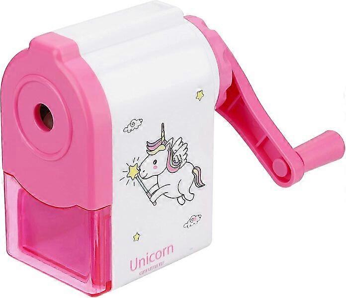 Pink manual pencil sharpener with a good rotating cutter and easy-to-clean waste