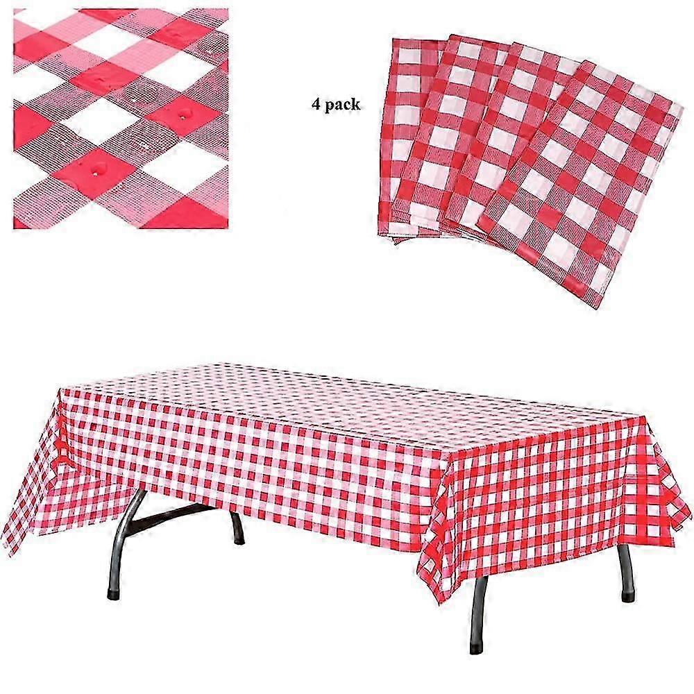Plastic Checked Tablecloth - Set of 4 Pieces - 54" wide x 108" long - Disposable Red and White Picnic Tablecloth - Rectangular Gingham Tablecloth for