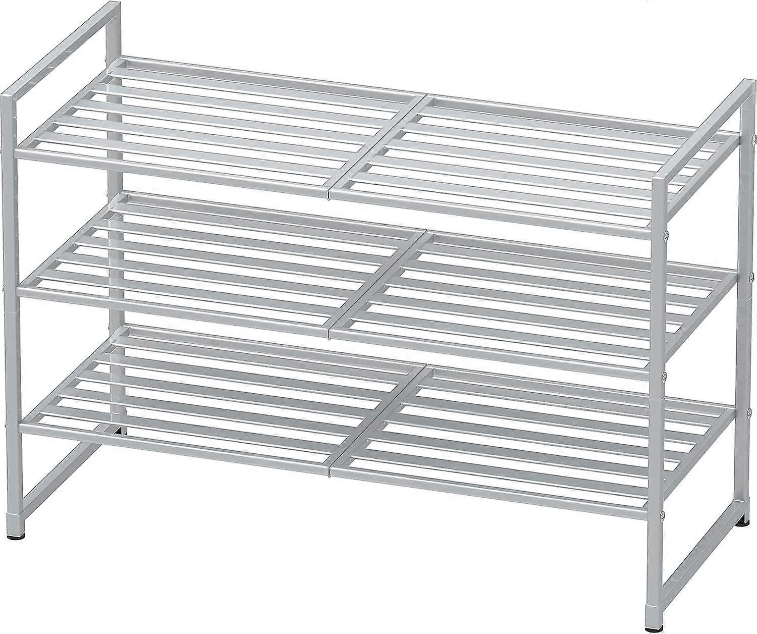 pleHouseware 3-Tier Stackable Metal Panel Shoes Rack, Bronze Silver