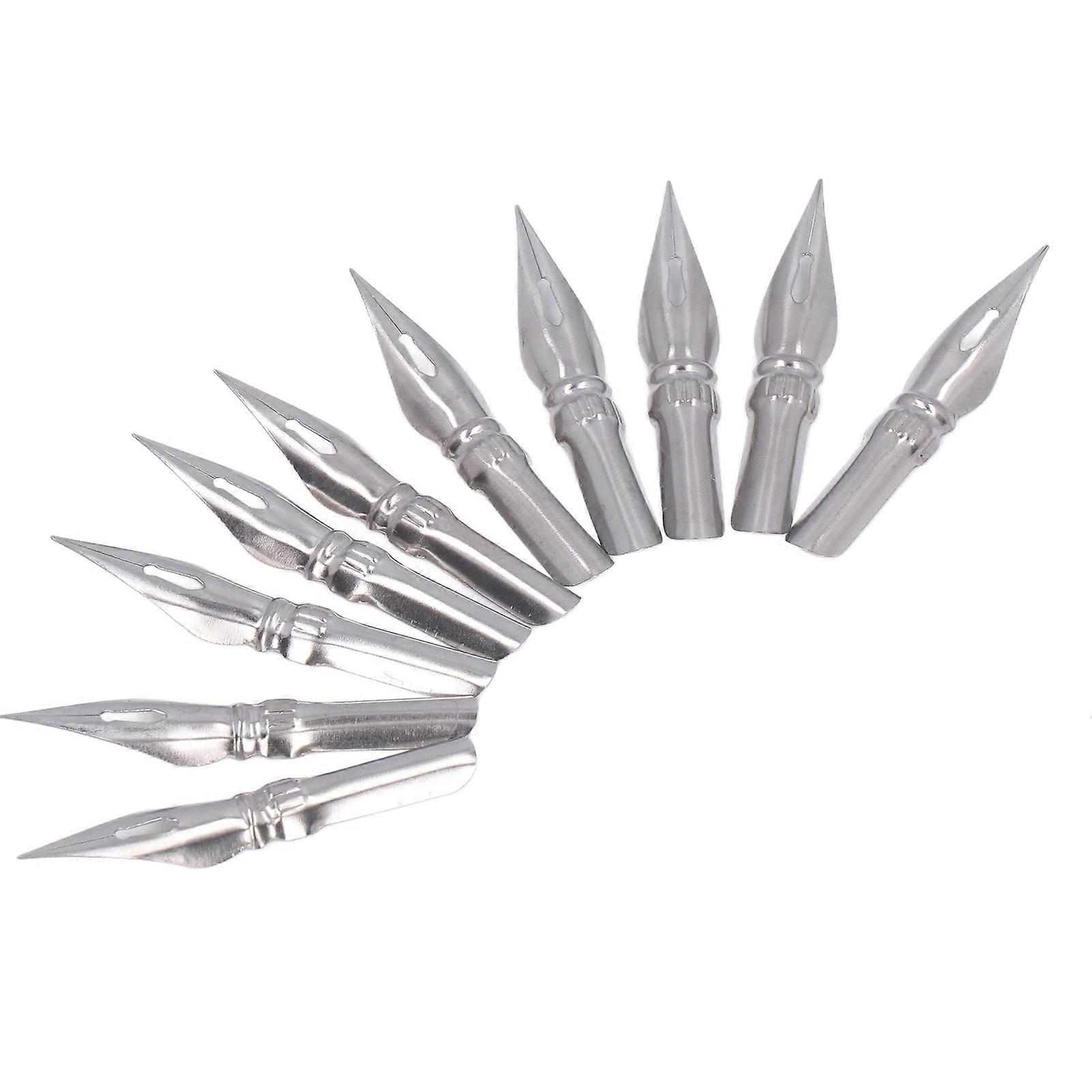 Feature: 1. Flexible Application: Very flexible and can draw lines of different thickness according to the strength of the pen 2. Smoothly Use: Can absorb an appropriate amount of ink to create the lines you want 3. Wide Range Applications: Very suitable for comic book beginners, very suitable for wire cutting design 4. High Performance: Compact, light weight, easy to carry, easy to install, and can be installed without other complicated operations 5. Durable Material: Metal material, durable, replaceable, can be used for a long time Specification: Item Type: Calligraphy Nib Material: Metal Product Specification: 10 Pcs Product Use: Replace the Pen Tip with a Water Dip Pen. Package List: 10 x Calligraphy Nib1 x Storage Box Note: Please allow 0 to 2 cm error due to manual measurement. Thanks for your understanding.