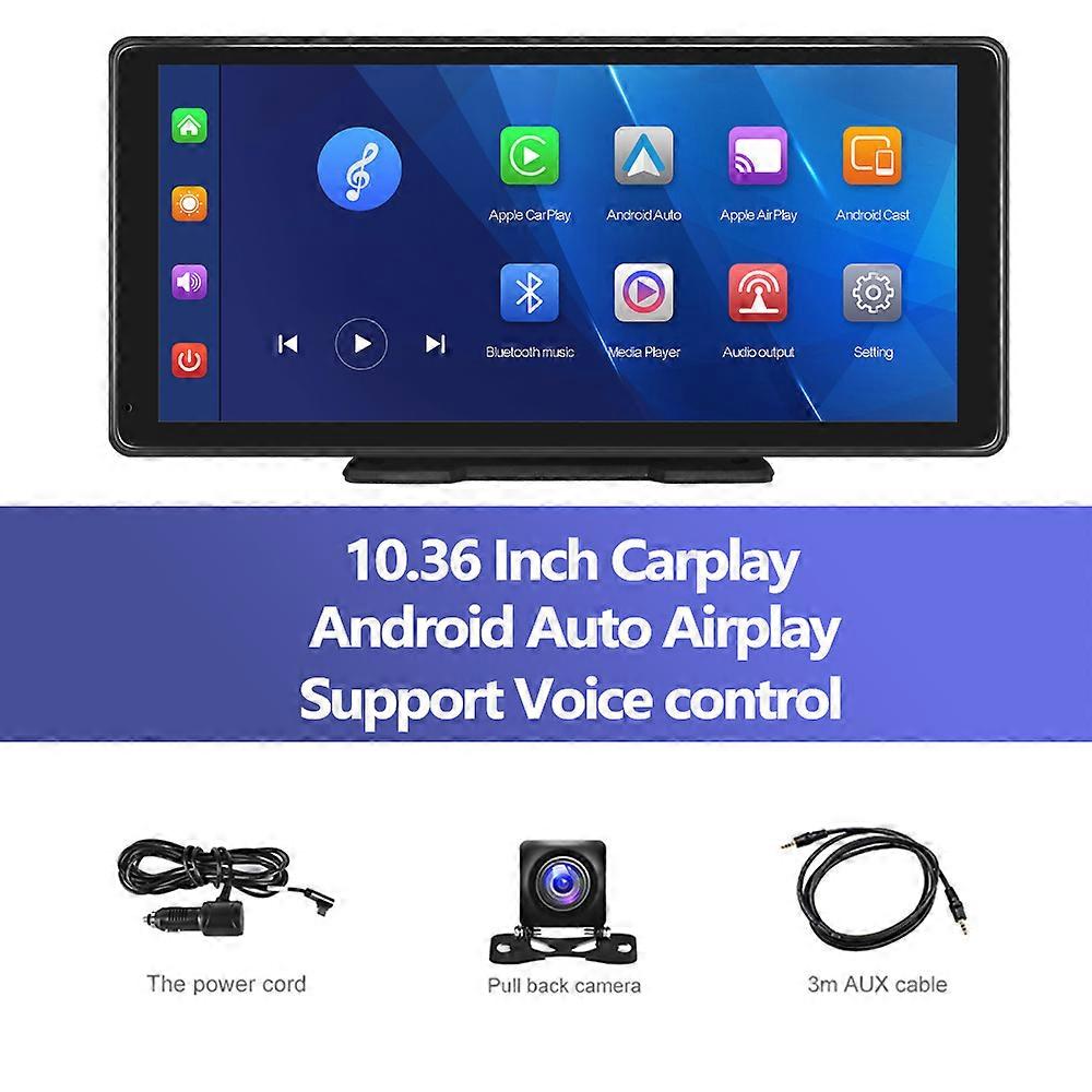 Podofo 10.36Inch Universal Carplay Monitor Android Auto Screen Smart Player With Voice Control FM Bluetooth Support Rear Cam TF