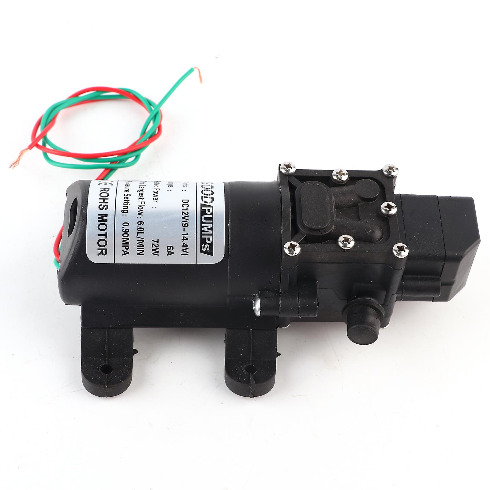 Pompe à membrane Micro 6,0 L/min 0,9 MPA, tuyau droit, sortie d'eau à droite des deux côtés, 12 V, 72 W
