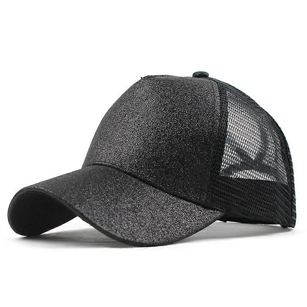 Ponytail Messy Buns Trucker Plain Baseball Visor Cap Unisex Glitter Hat