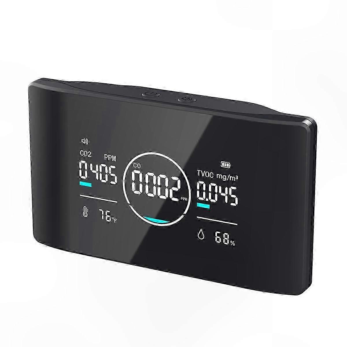 [ADVANCED 10-IN-1 MONITORING] Our air quality monitor helps maintain fresh and safe indoor air. Equipped with multiple sensors, it accurately tracks CO, PM2.5, CO2, temperature, humidity, VOCs, and formaldehyde. It alerts you to unusual increases to help protect your family's health. [PRECISE & RELIABLE SENSORS] Featuring advanced PM2.5 and formaldehyde sensors, this device delivers accurate air quality readings. Detect potential pollutants early to help prevent health risks and maintain a healthy indoor environment. [ENHANCED BATTERY LIFE] Powered by a reliable lithium polymer battery, the monitor offers extended operation and portability. Enjoy over 12 hours of continuous monitoring on a single charge. The included Type-C cable provides universal compatibility and fast recharging. [ALERT SYSTEM FOR HIGH CO2 LEVELS] This monitor alerts you with color changes and an audible alarm when CO2 levels exceed 2000 ppm. Ideal for use in areas affected by poor ventilation or combustion sources, helping ensure cleaner air. [COMPREHENSIVE FORMALDEHYDE TESTING] The monitor continuously measures formaldehyde levels, which may cause irritation to eyes, nose, and throat. Each unit undergoes strict testing to ensure accuracy and performance. Color: Black Material: Plastic Package Contents: 1 x Detector 1 x USB cable Note: Light reflection and display differences may cause slight variations between the product color in images and the actual item. Measurement may vary by +/- 1-3 cm.