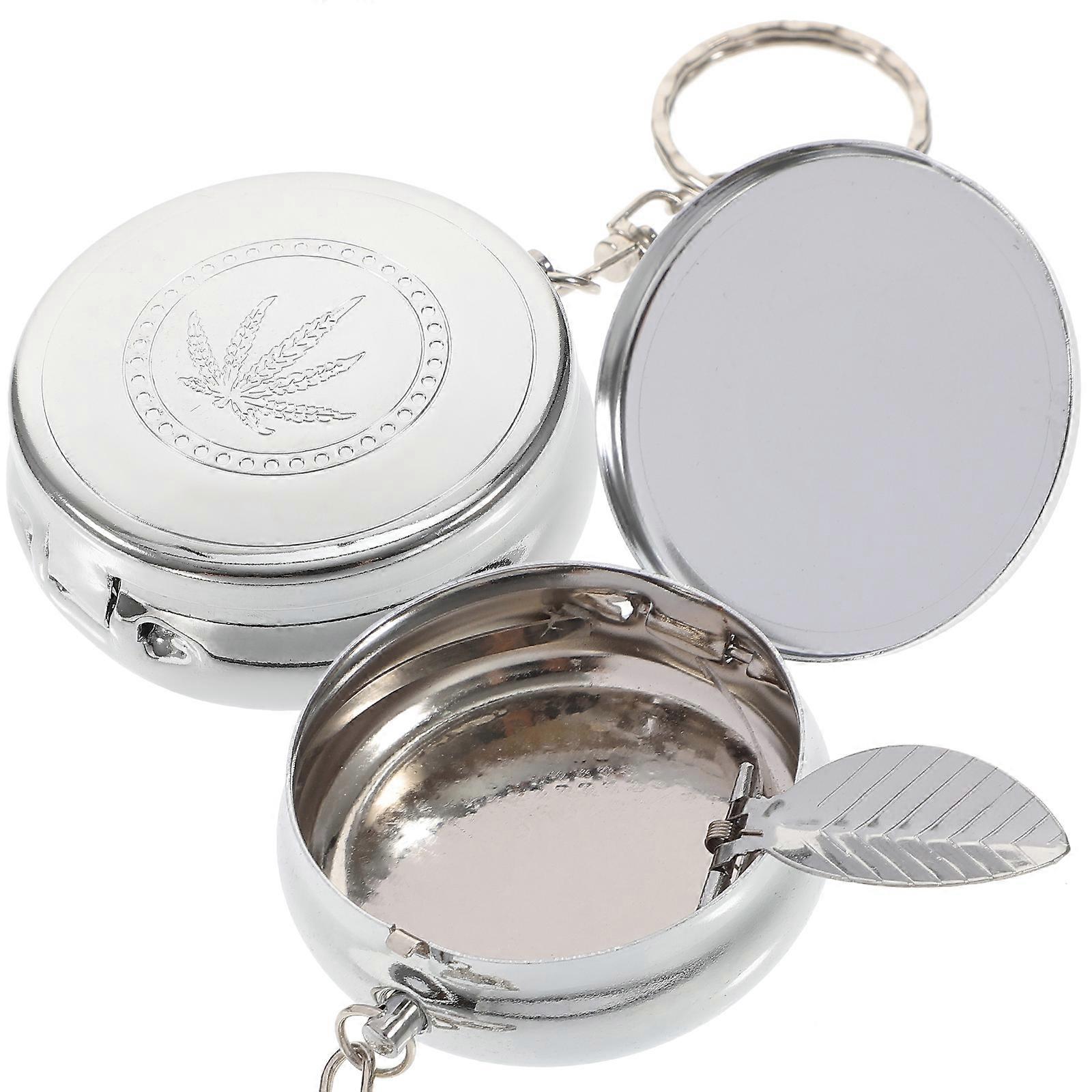 Portable Ashtray Keychain for Storing 2Pcs Mini Circular Ashtrays Silver Color