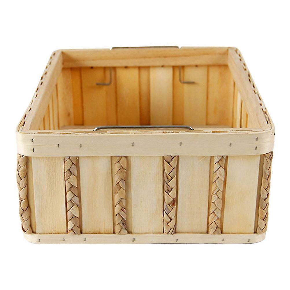 Portable Handle Design Wood Crate Box For Desktop Storage Brown Color 1Set