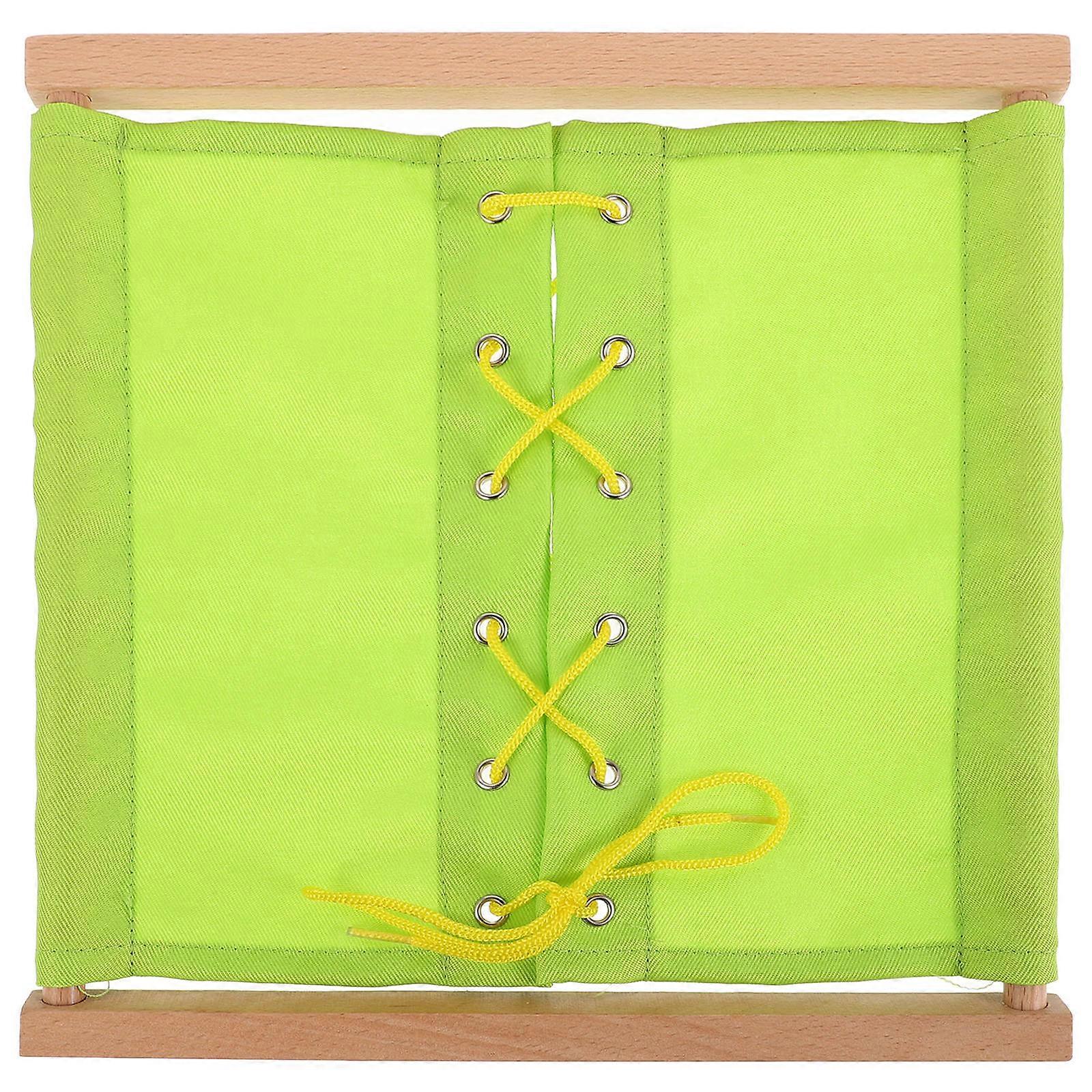 Portable Lacing Toy for Kids to Learn Tying Shoes with Wood and Cloth 6 x 4 inches