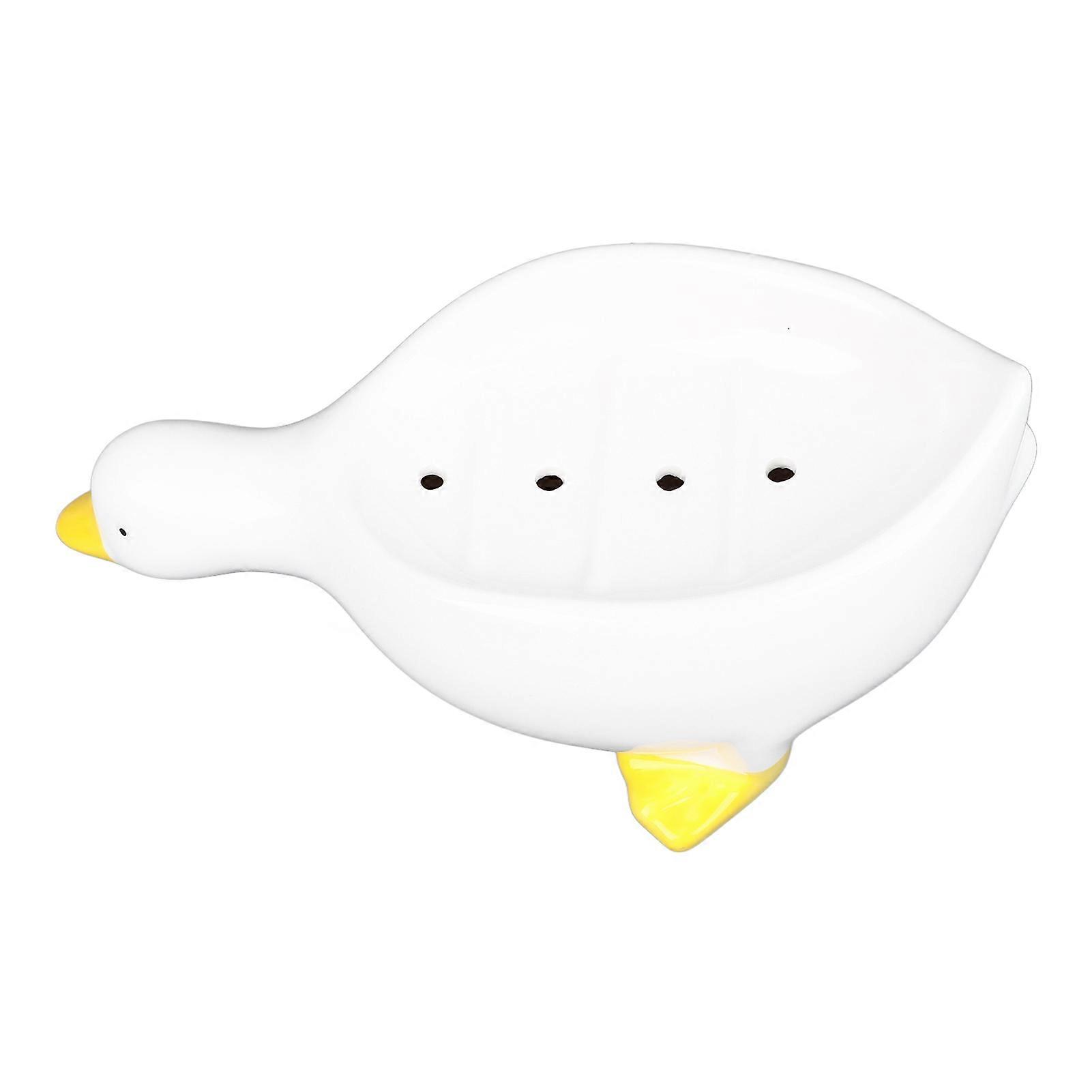 Porte-savon en céramique en forme de canard, mignon, auto-drainant, avec vidage, pour douche, salle de bain, cuisine