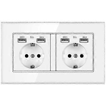 منفذ كهربائي ذو فتحة اثنين مع 4 منافذ Usb Glass لوحة الحائط مقبس توصيل الطاقة