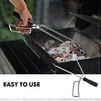 Practical Bbq Tong Solid Beech Handle for Charcoal Use 1Pcs