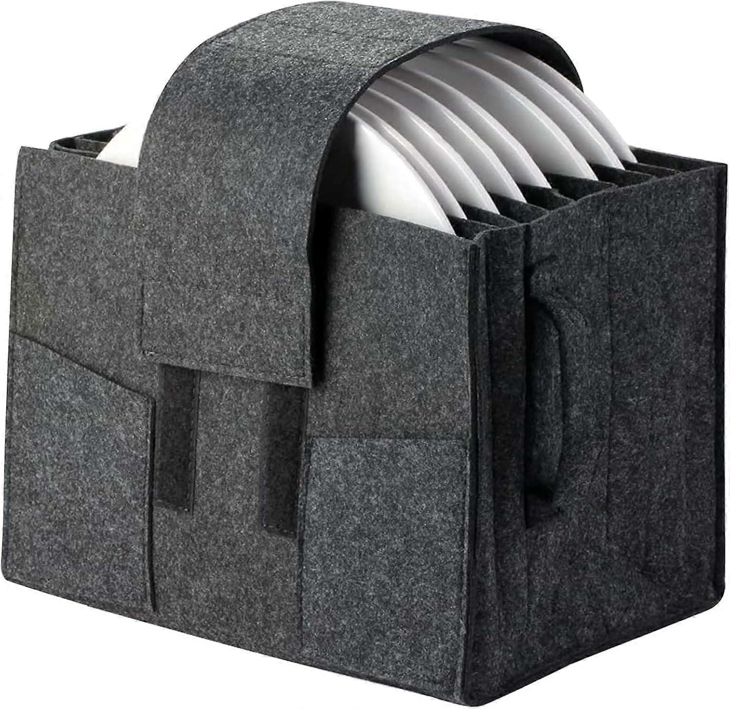 Practical plate storage - Felt cup holder for 8 plates, tidy drawer organizer for RV, camping, drawer, shelf and cupboard - 27 * 20 * 18 cm (Grey)