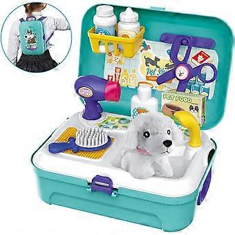 2023 - مجموعة اللعب البيطري صالون الكلاب الحيوانات الأليفة في حالة حقيبة ظهر صغيرة لعب دور لعبة مع 16 قطعة للطفل