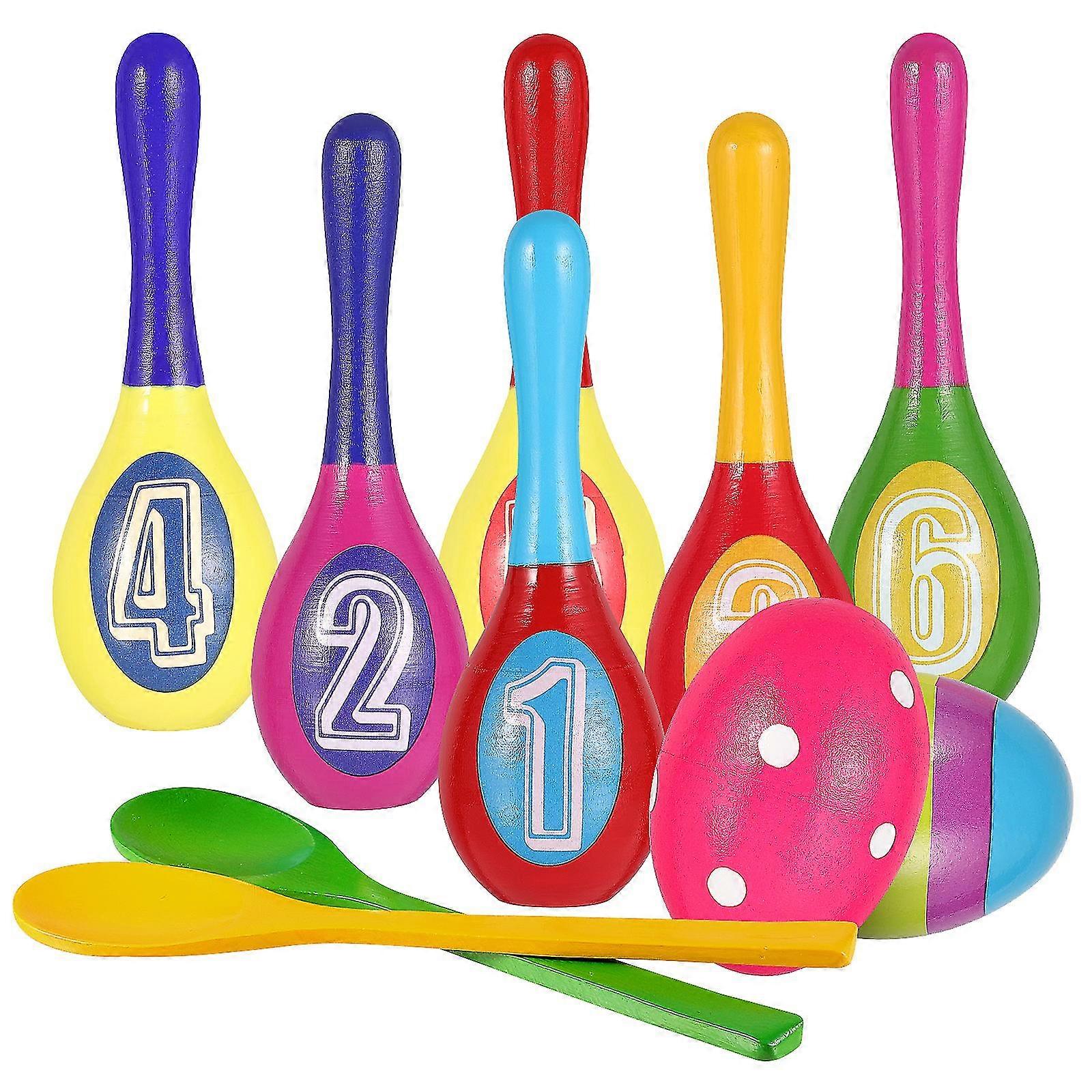 Pretyzoom Easter Bowling Game Set Wooden Bowling Pin Easter Eggs Spoons Educational Easter Game Toys Party Supplies