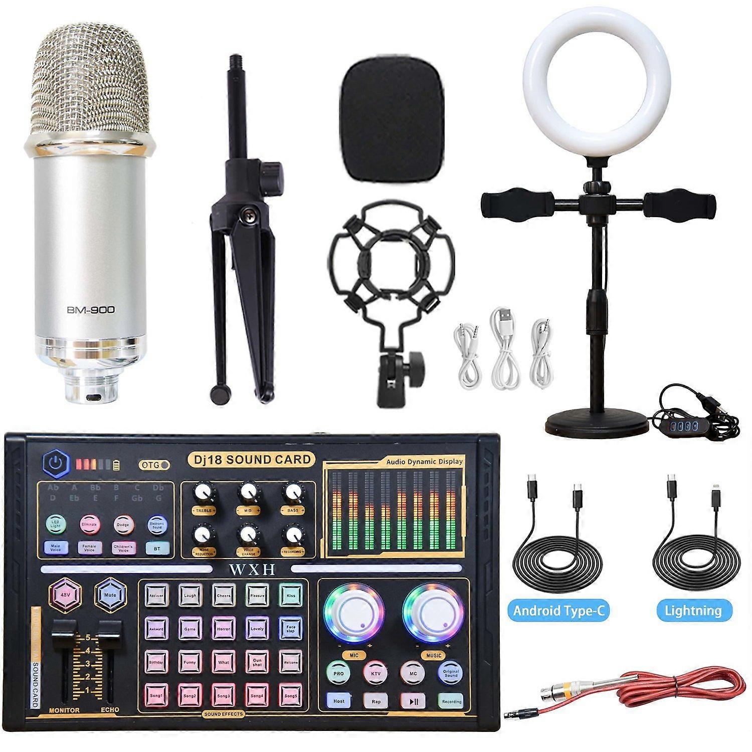 Professional tuning sound card set with Silver microphone fill light live recording set