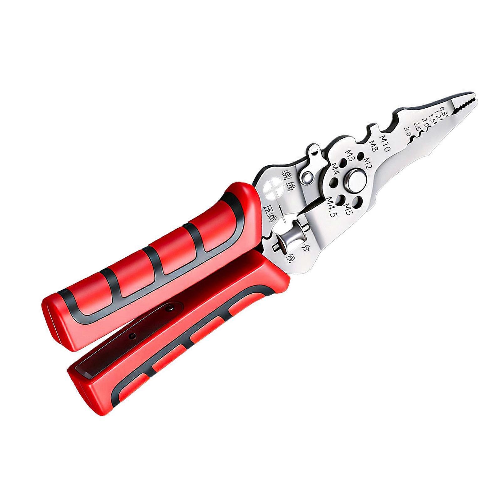 Professional Voltage Detector Wire Stripper Pliers Multifunction Tool for Various Wire Size Featuring Comfortable Grip Red