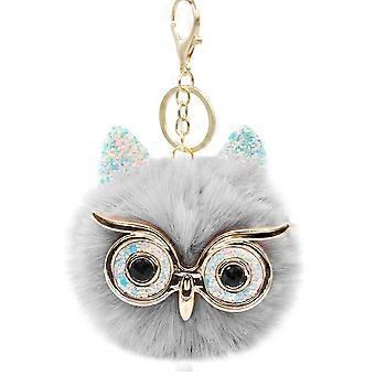 Puffball Owl Faux Fur Pom Pom Keychain Handbag Purse Jewelry Holder Keyring(Gr CGN