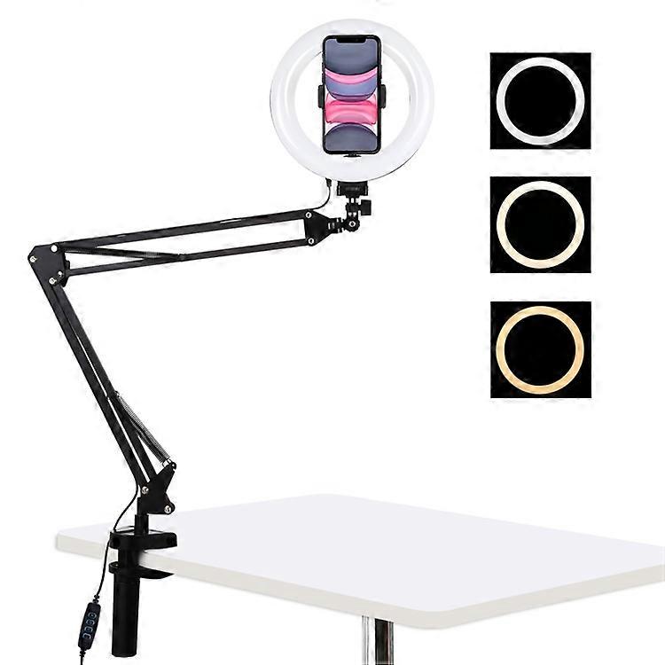 PULUZ 7.9 inch 20cm Ring Curved Light + Desktop Arm Stand USB 3 Modes Dimmable Dual Color Temperature LED Vlogging Selfie Photogra