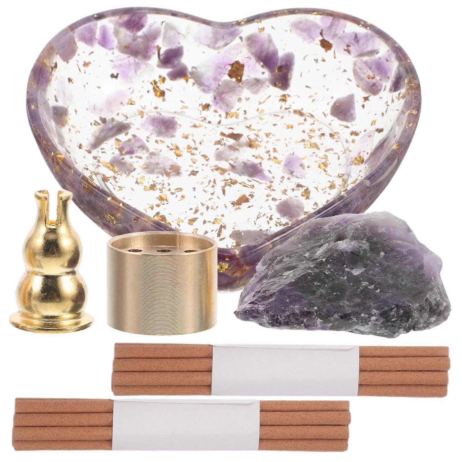Purple Crystal Incense Holder for Smudging 2Sets Heart Shape with Ash Collector