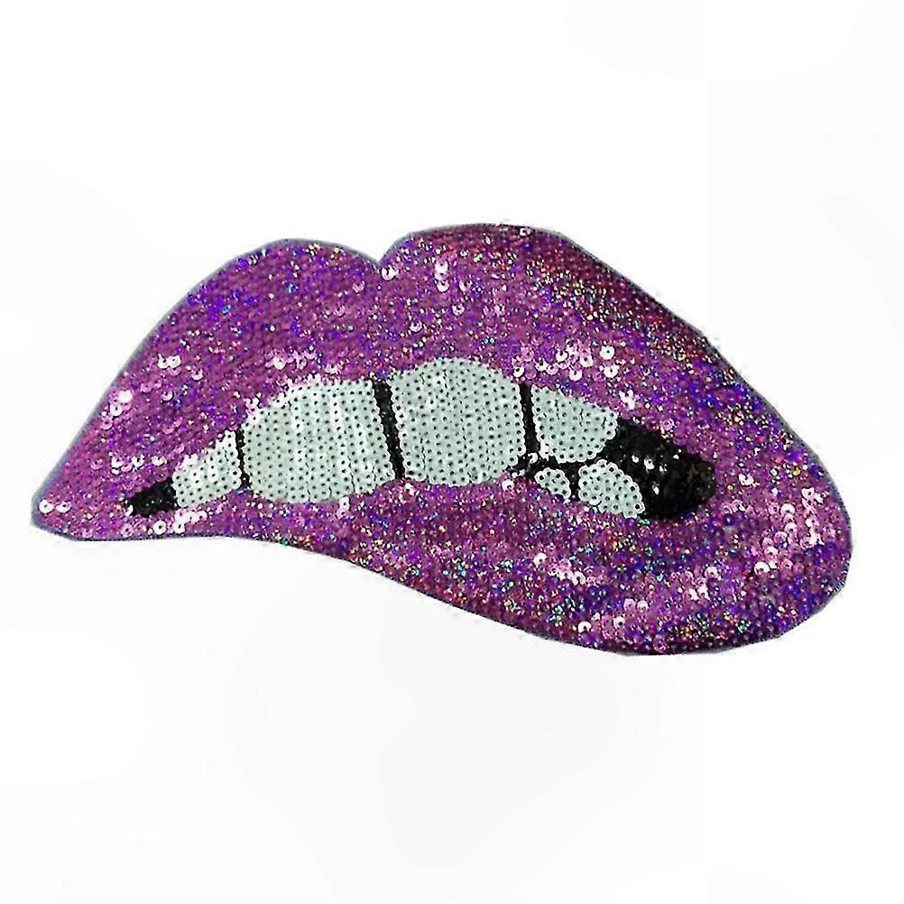 Purple Embroidered Lips Patch with Sequin Detailing for Crafting and Customization 6.3x11.8x0.4in 1 Set