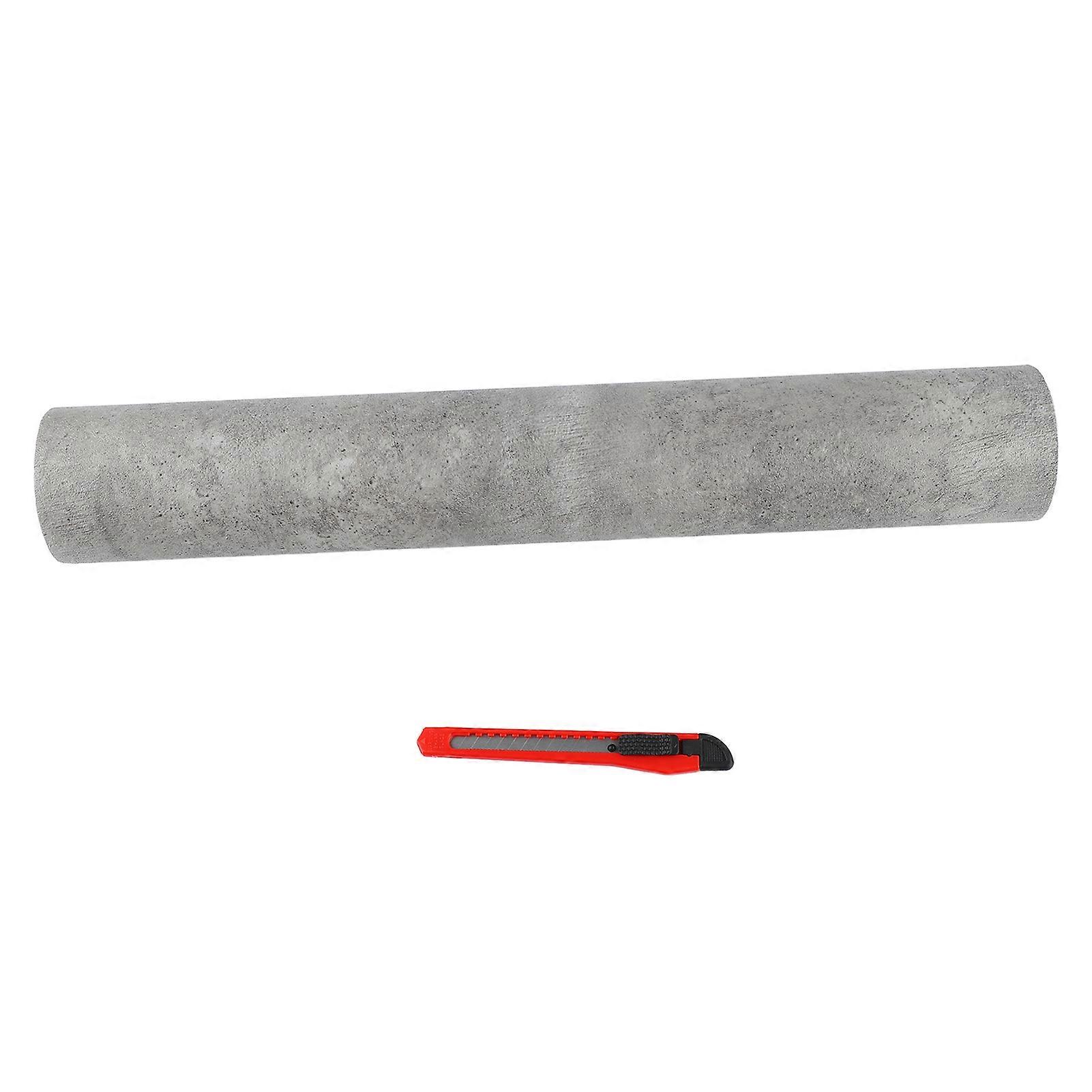 PVC Peel and Stick Wallpaper Cement Grey Wall Sticker 40x900cm Vintage Style Self Adhesive Paper with Cutter for Easy Application
