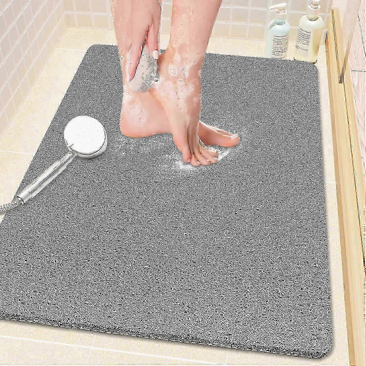 PVC Loofah (Phthalate Free) Shower/Bathtub Mat Non-Slip, 24x16 inch, Soft Tub Mat with Drain, for Tub and Bathroom,Quick Drying,Grey