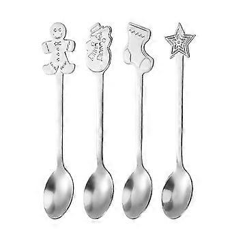 Pxcl 12 ملاعق قهوة عيد الميلاد الفولاذ المقاوم للصدأ ملاعق صغيرة القهوة الشاي حساء السكر الحلوى بنكهة الآيس كريم (فضي)