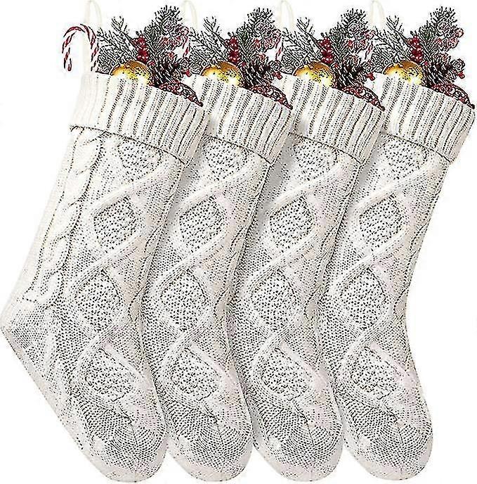 Pxcl 4 Pack Christmas Stockings 18 Inches Large Size Cable Knitted Stocking Gifts & Decorations For Family Holiday Xmas Party, Ivory White
